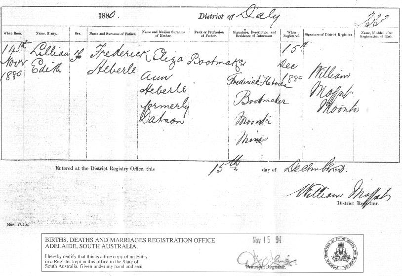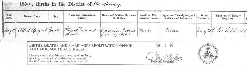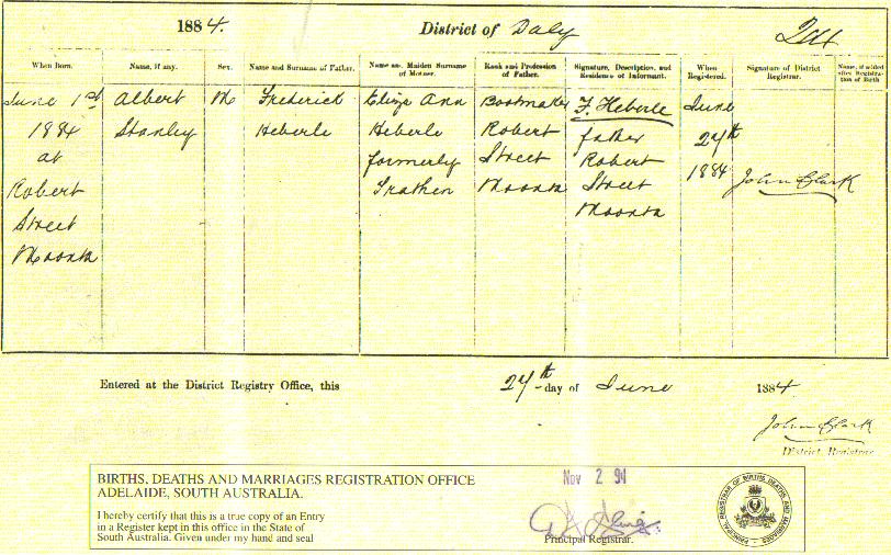 | Australia | South Australia | Birth | Albert | 1884 | Albert1884 |