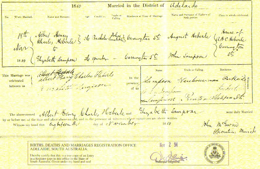 | " | South Australia | Marriage | Albert | 1880 | Albert1880 |