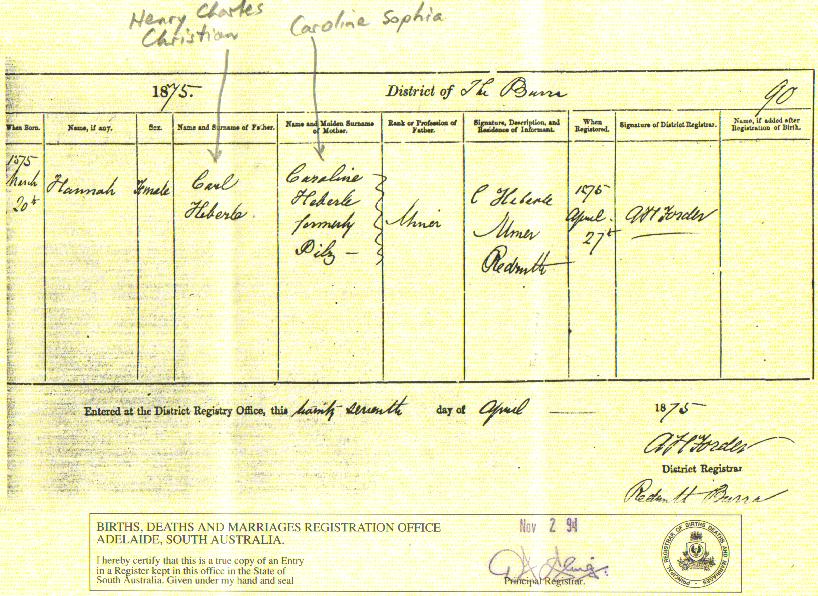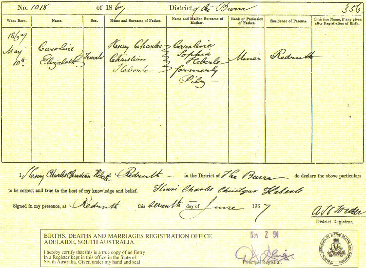 | " | South Australia | Death | Caroline | 1885 | Caroline1885 |