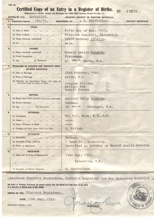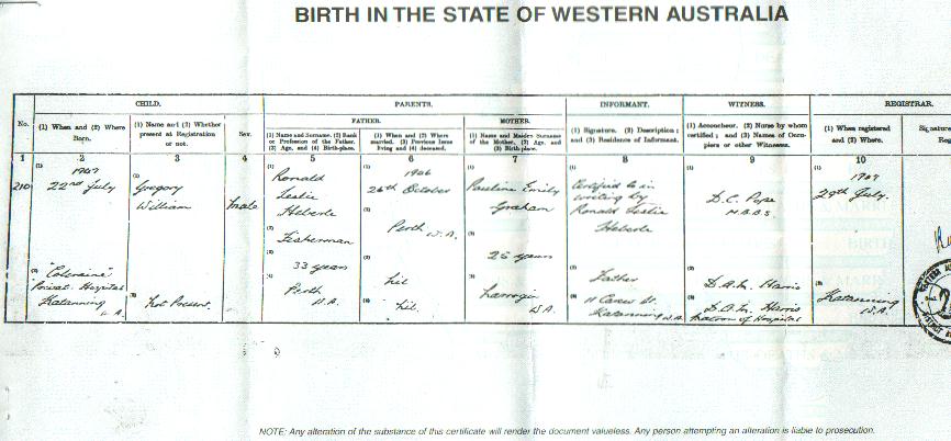 | " | West Australia | Birth | Greg | 1947 | Greg1947 |