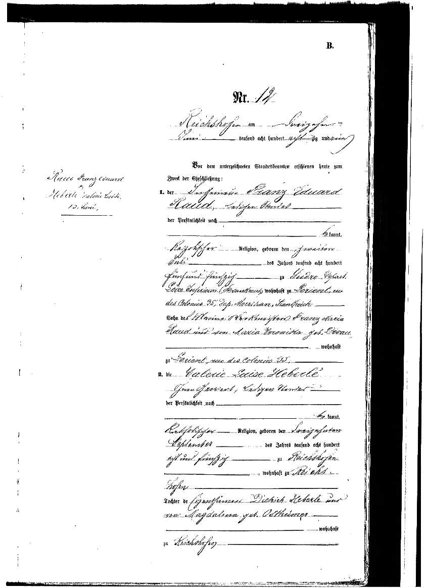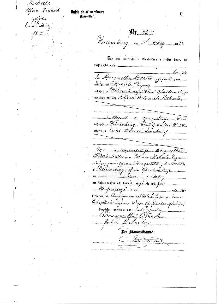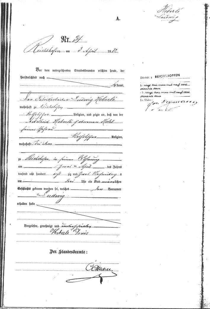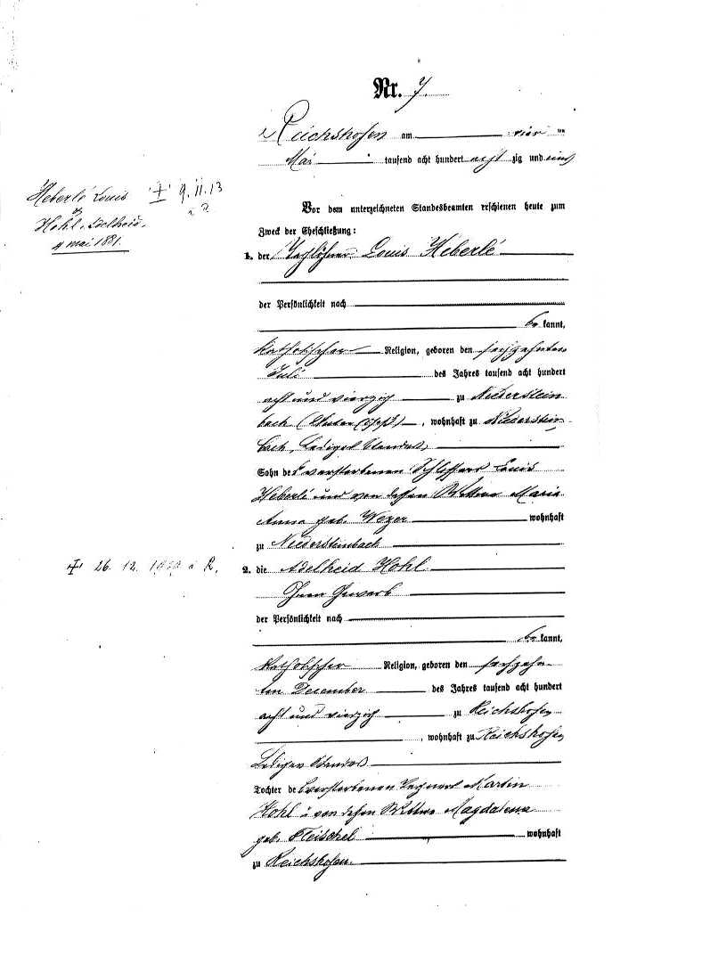 | " | Bas Rhin | Marriage | Louis | 1881 | HeberleHohl1881page1 |
