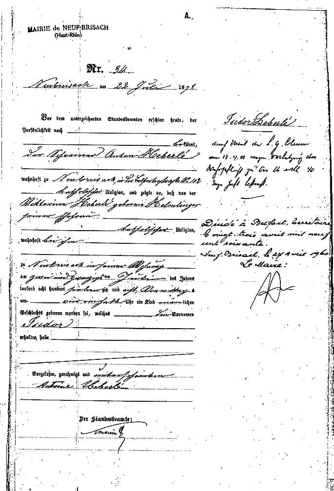 | ' | Haut Rhin | " | Isidore | 1878 | NaissanceIsidore1878 |