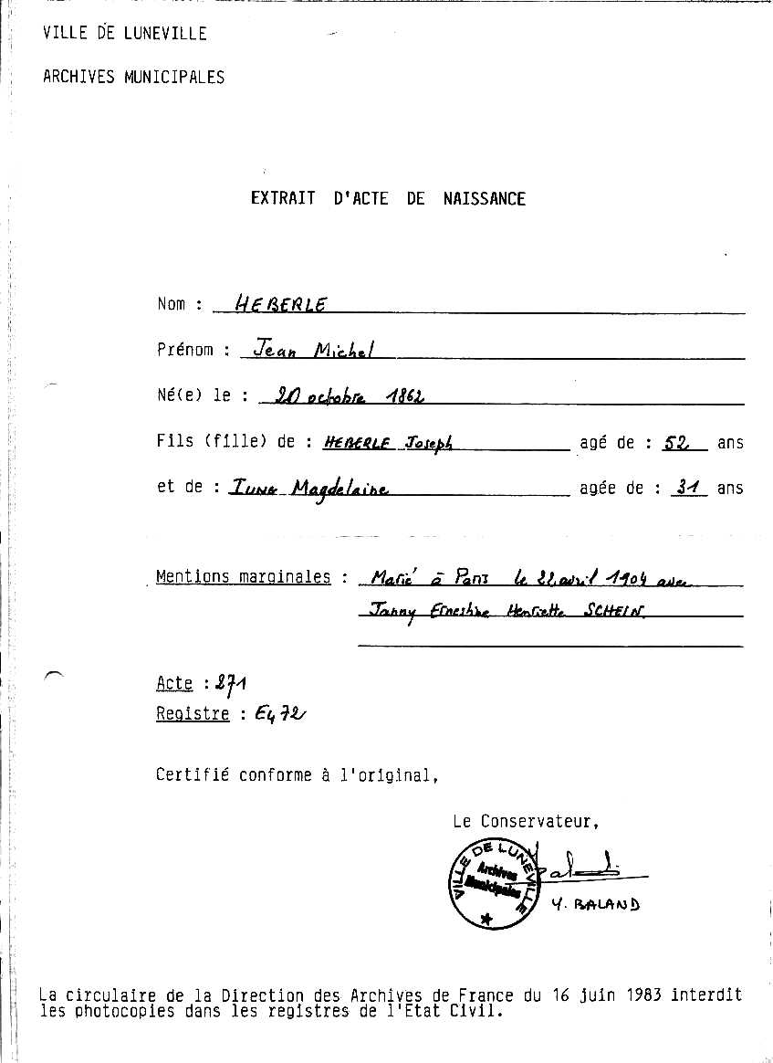 | " | Meurthe et Moselle | " | Jean Michel | 1862 | NaissanceJeanMichel1862 |