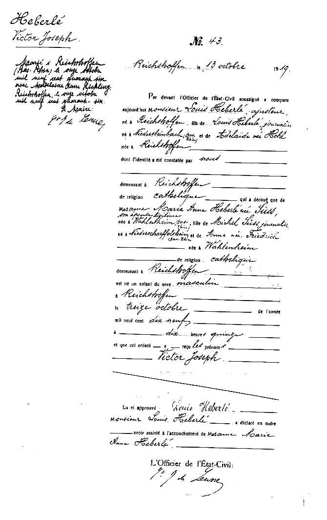 | " | " | " | Victor Joseph | 1919 | NaissanceVictorJoseph1919 |