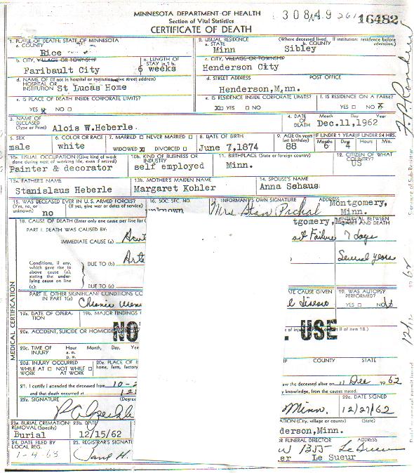 | " | Minnesota | Death | Alois | 1962 | Alois1962 |