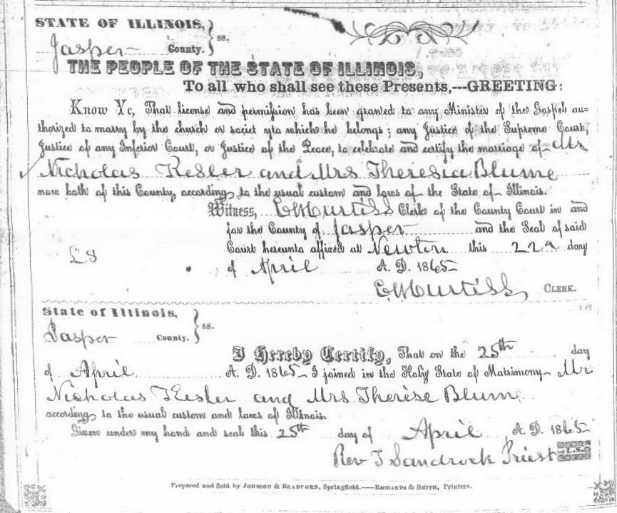 | " | Illinois | Marriage | Theresa Louise Heberle Blum | 1865 | blumkesslermarriage-1865 |