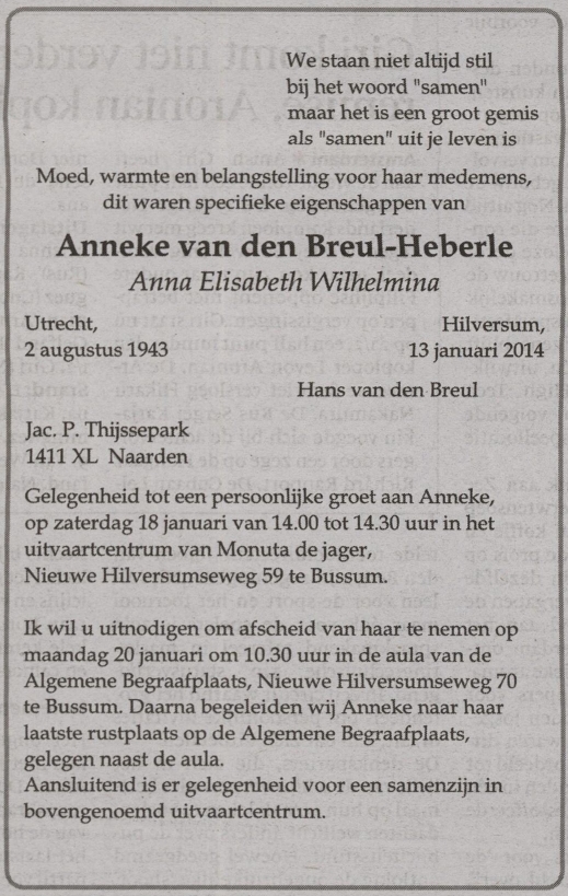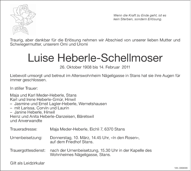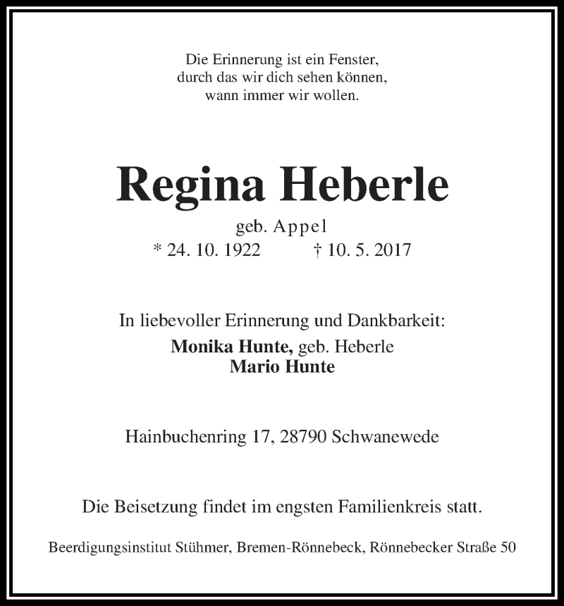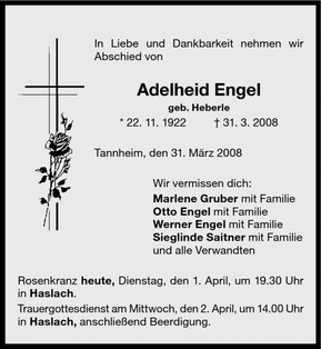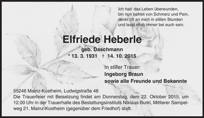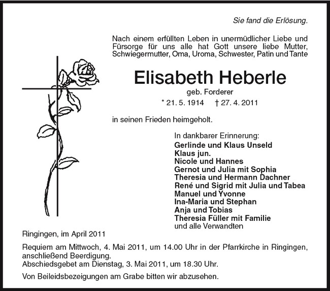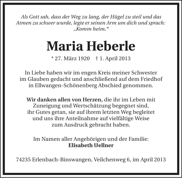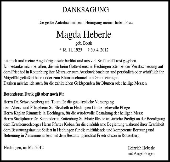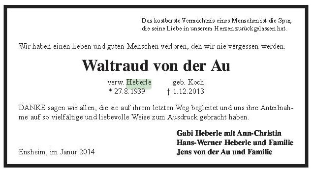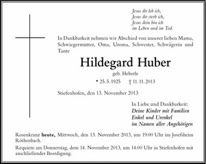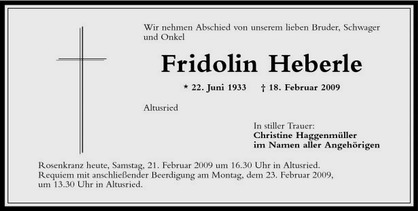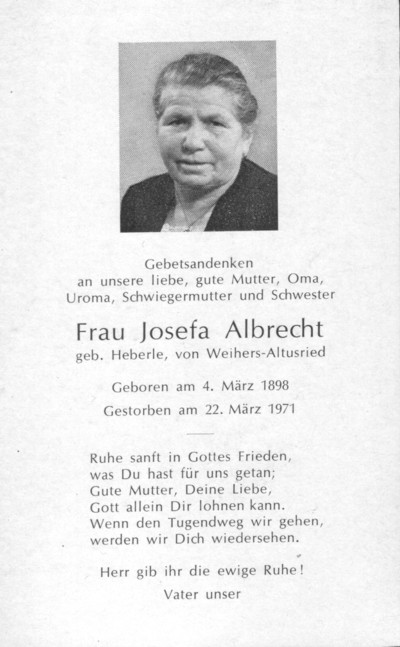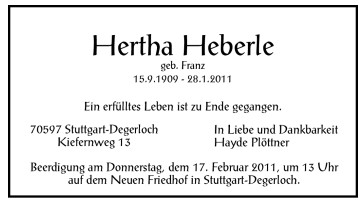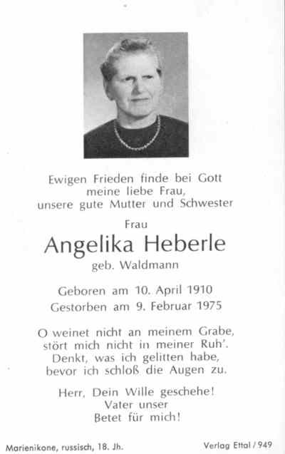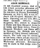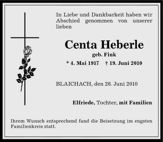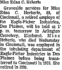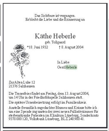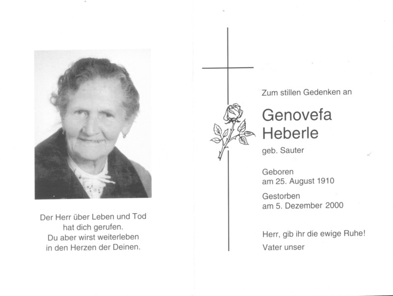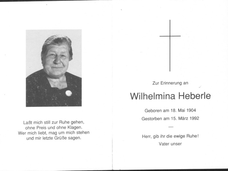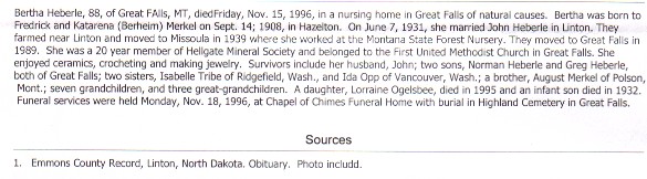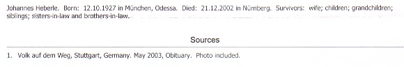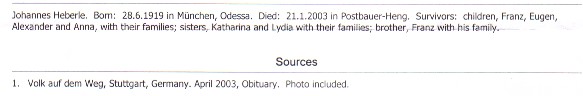 | " | Hildegard M Heberle b 27.12.1933 Stockach Germany, emigrated to USA in 1956, now lives in Brookfield, Wisconsin. |