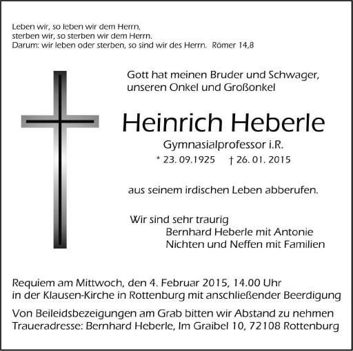 | " | Rudolf Heberle b Lubeck Germany 1896, emigrated to USA June 1938 (with wife Franziska, children Juergen b 1925, Klaus b 1931, Antje b 1935), settled in Baton Rouge LA. |