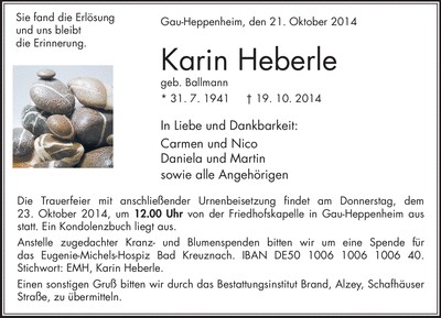 | " | Angela Heberle (m Whitman) from Germersheim, emigrated to USA 9.9.1967 |