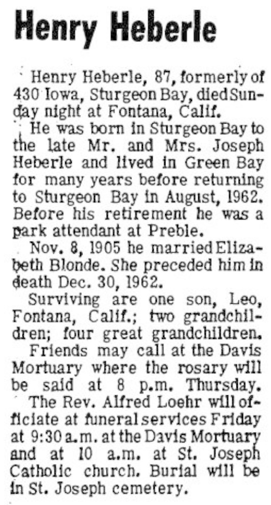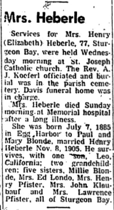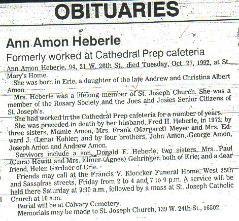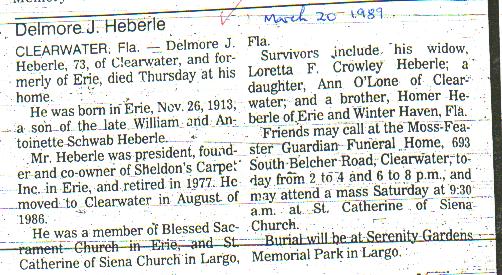 | " | George J Heberle b 1883 Canada, arrived before 1920, settled Bridgeport CT. |