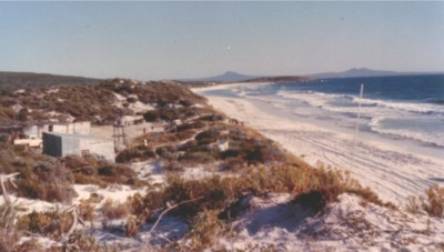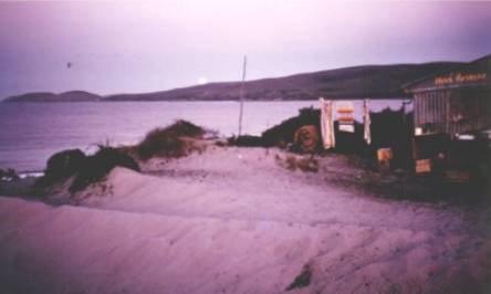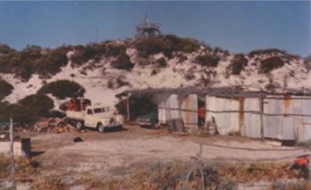 Camp, in 1977, looking north west. Mast of Rod Frost�s