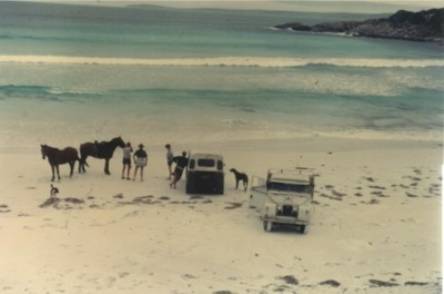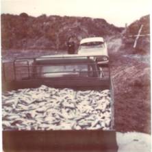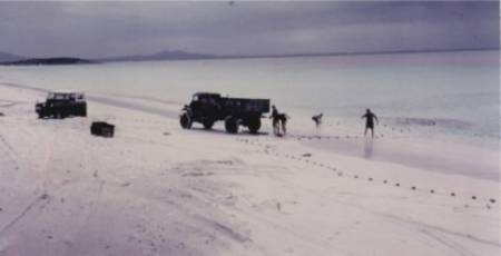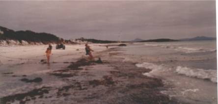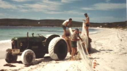 Salmon in net on Reef Beach. John Cleary�s Land Rover,