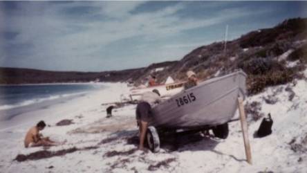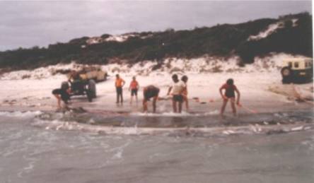 Pulling net by hand, Reef Beach. Julie Casey, Rod Frost. |