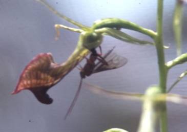 Cryptostylis ovata�and wasp, Dec 1982 |