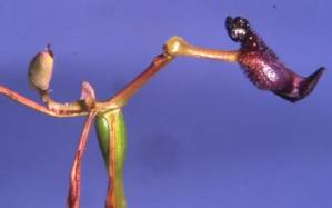 solitary leaf, about 10cm long, appears at the base of the stem. The leaf, stem