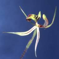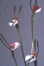 According to Hoffman and Brown (1998), the Dragon orchids were originally placed in Caladenia. Their labella are covered in long hairs, rather than calli and they have short, broad leaves which lie flat on the ground. There are at least 4 species, all confined to West Australia.